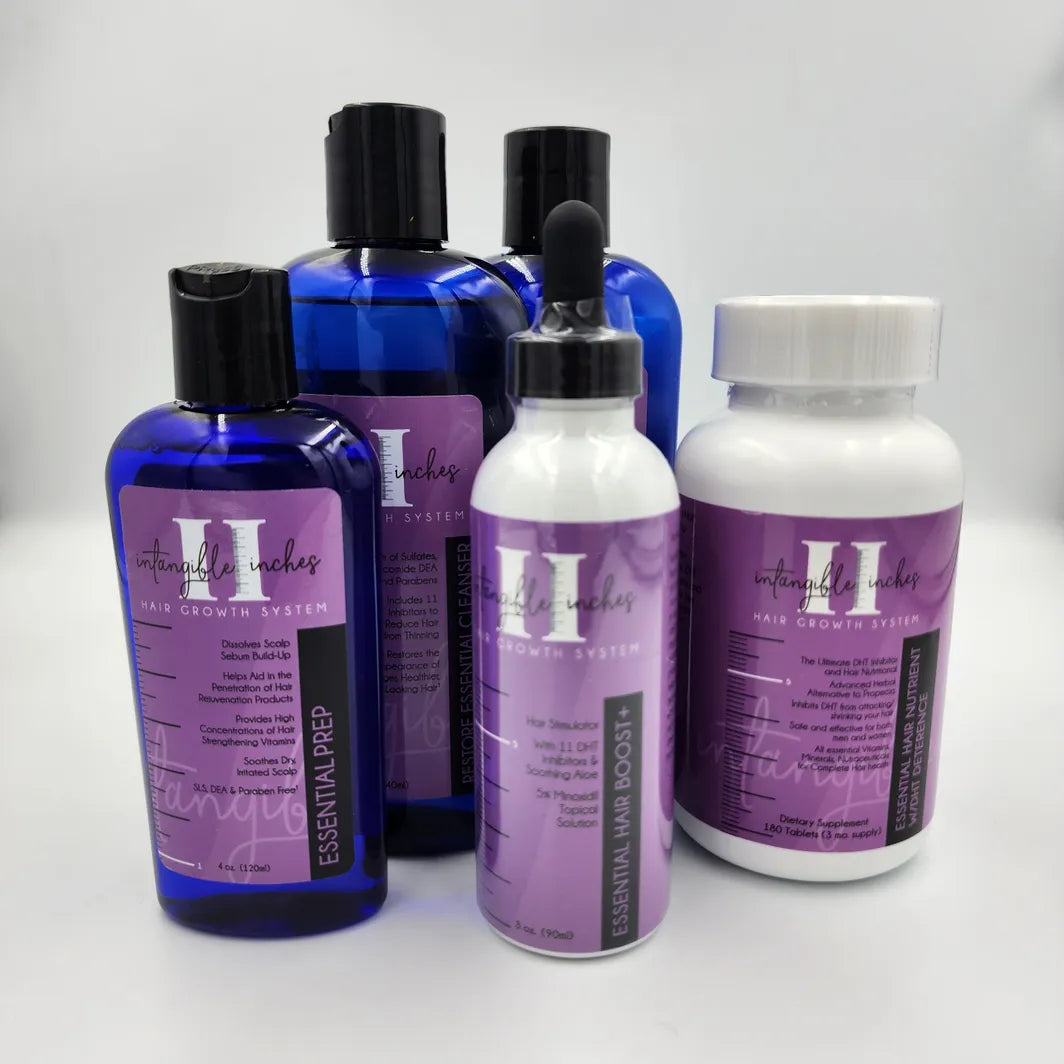 Formulated for consistent, visible results, the Essential Therapy Bundle provides a balanced blend of cleansing, nourishment, and DHT control — everything your hair needs for long-term strength and vitality.